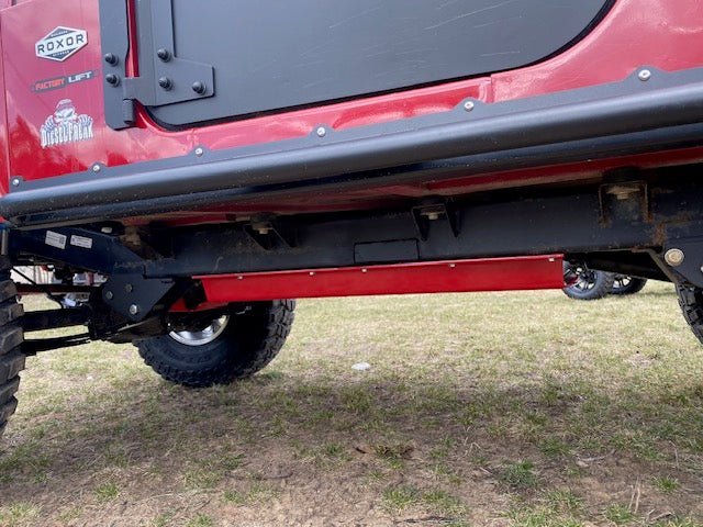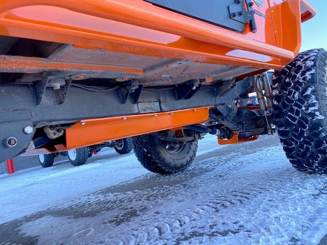 Este kit volverá a cronometrar su transferencia, obteniendo una distancia al suelo de 3" en el punto central, eliminando el travesaño original y se convertirá en un patín completo para los bajos. La sección central se retirará para futuras necesidades de mantenimiento. Este kit permitirá OEM, OTR & El cárter de aceite del motor Cecco patina para permanecer en su lugar. La palanca de cambios 4x4 conserva su ubicación.