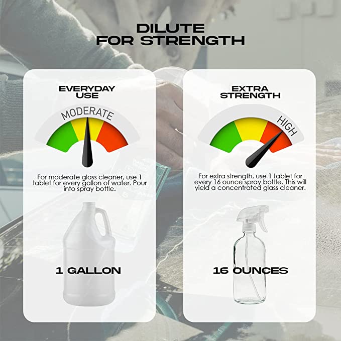 - One Tablet Gives You 1 Gallon of Glass Cleaner